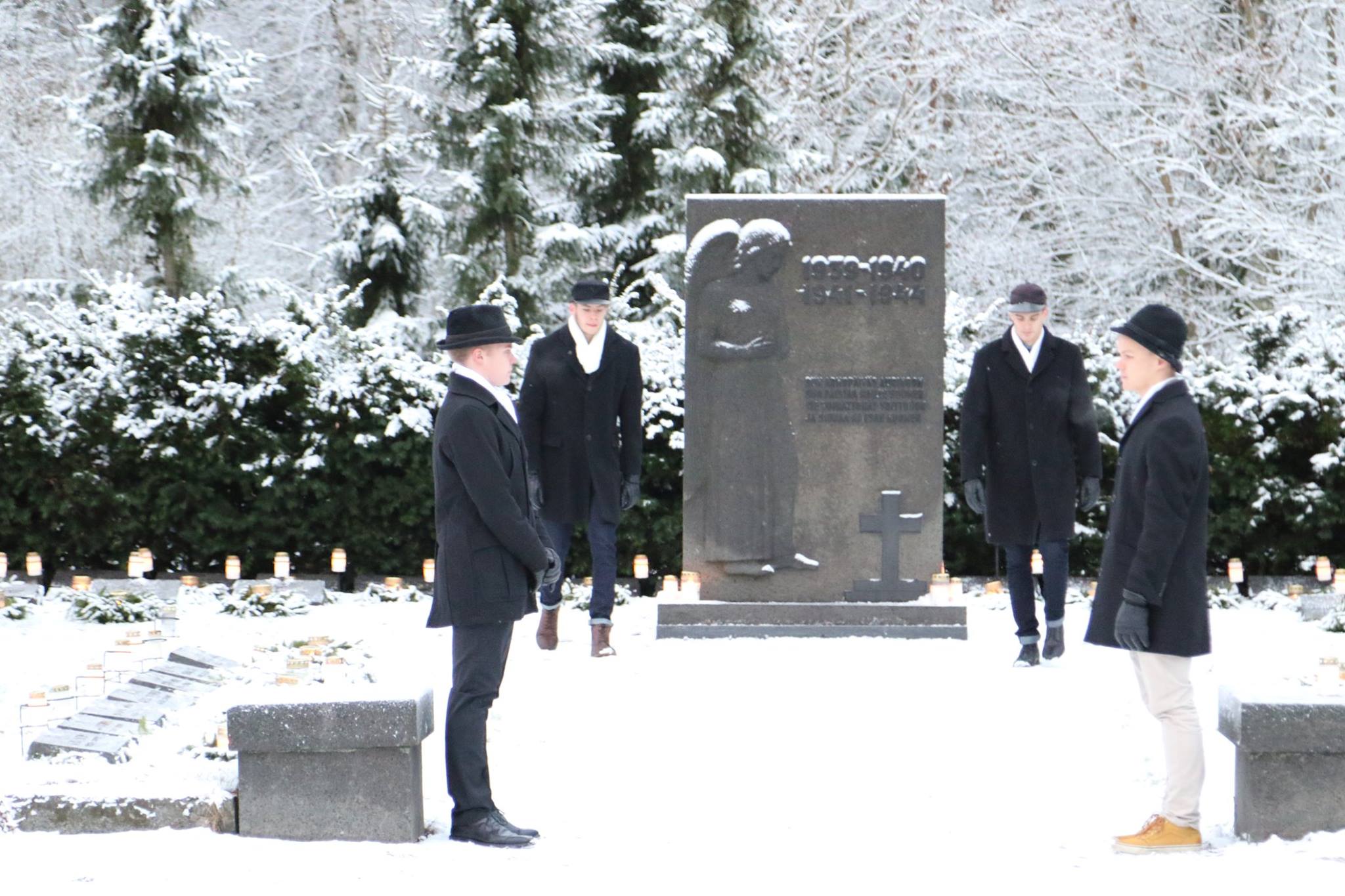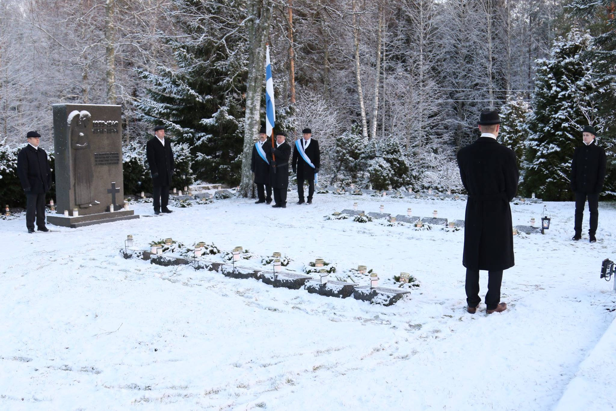Seppeleenlaskutilaisuus sankarihaudoilla.