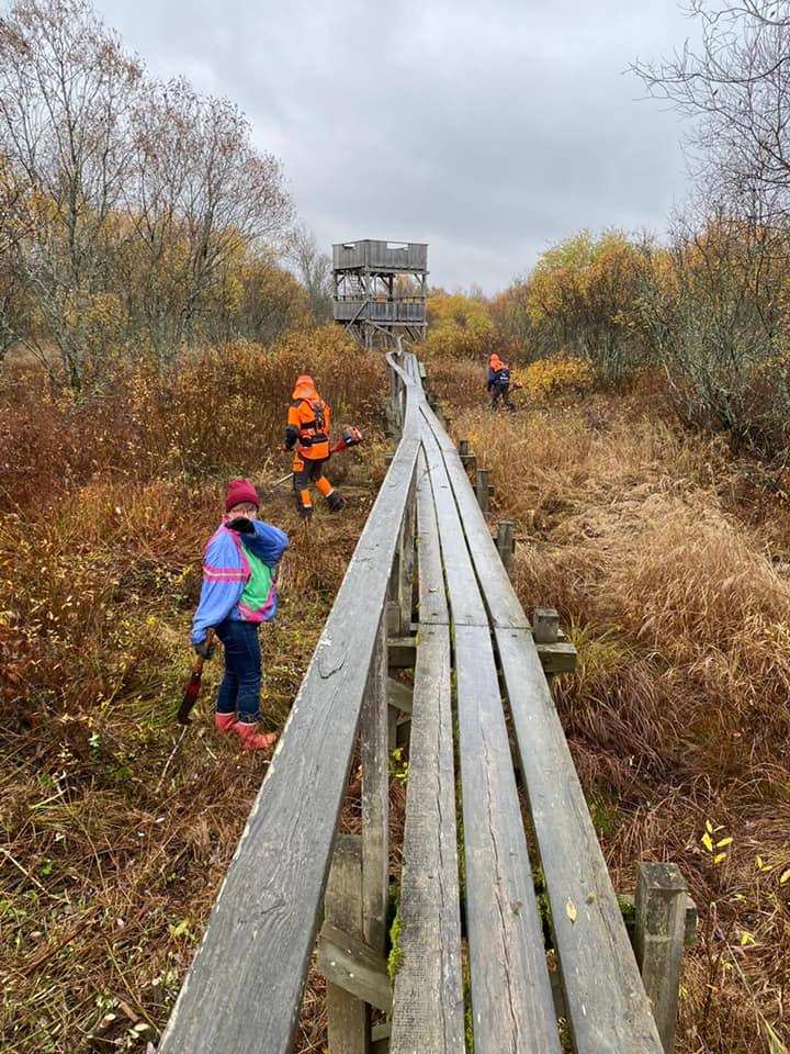 Aneriojärven luontopolun ja lintutornin ympäristöä siistittiin mm. raivaamalla pois pusikoita lauantaina 9.10.2021.