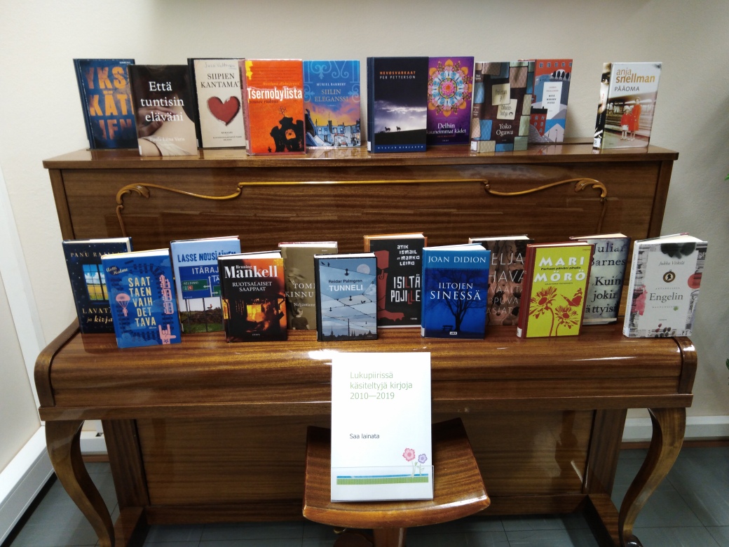 Lukupiirissä vuosina 2010-2019 käsiteltyjä kirjoja.