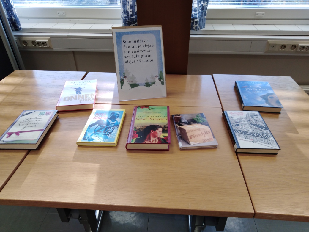 Suomusjärvi-Seuran ja Suomusjärven kirjaston ensimmäisen lukupiirin 26.01.2010 kirjat.