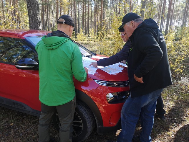 Sunnuntaina 26.9.2021 kauniissa syyskelissä käytiin tutustumassa Ketunkierroksen polkuihin ja pohdittiin jatkosuunnitelmia karttoihin perehtyen.