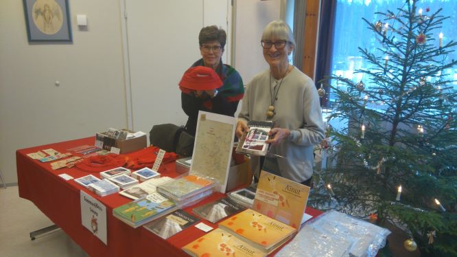 Salon seurakunnan järjestämät joulumyyjäiset 03.12.2016 Kitulan seurakuntakeskuksessa. Kuvassa Seija Seppänen ja Marja-Leena Andelmin.