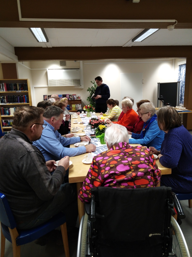 Juhlalukupiiri juhlisti Suomusjärven kirjastossa kokoontuvan lukupiirin 10-vuotista taivalta tiistaina 28.01.2020. Mukana myös Salon kirjastopalvelupäällikkö Jaakko Lind.